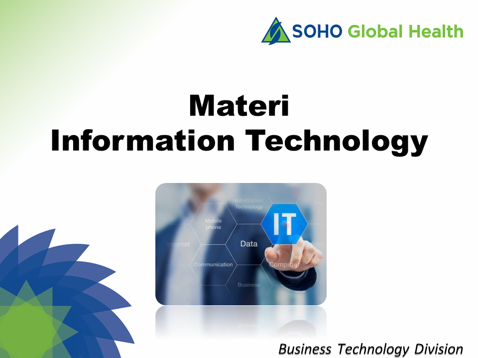 Teknologi Informasi (IT) sangat vital bagi operasional SOHO Global Health. IT merupakan sarana untuk meningkatkan kualitas dan efisiensi kerja. IT merupakan tempat penyimpanan informasi penting dan terkadang informasi rahasia perusahaan. Akses yang tepat atau kerusakan pada sumber daya ini akan berdampak serius bagi SOHO Global Health. Tujuan aturan ini adalah untuk: